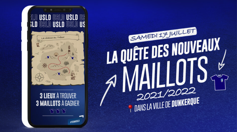 • Création d’une « chasse aux maillots » digitale : parcours géolocalisé à travers la ville de Dunkerque pour retrouver les 3 nouveaux maillots de la saison 2021/2022.